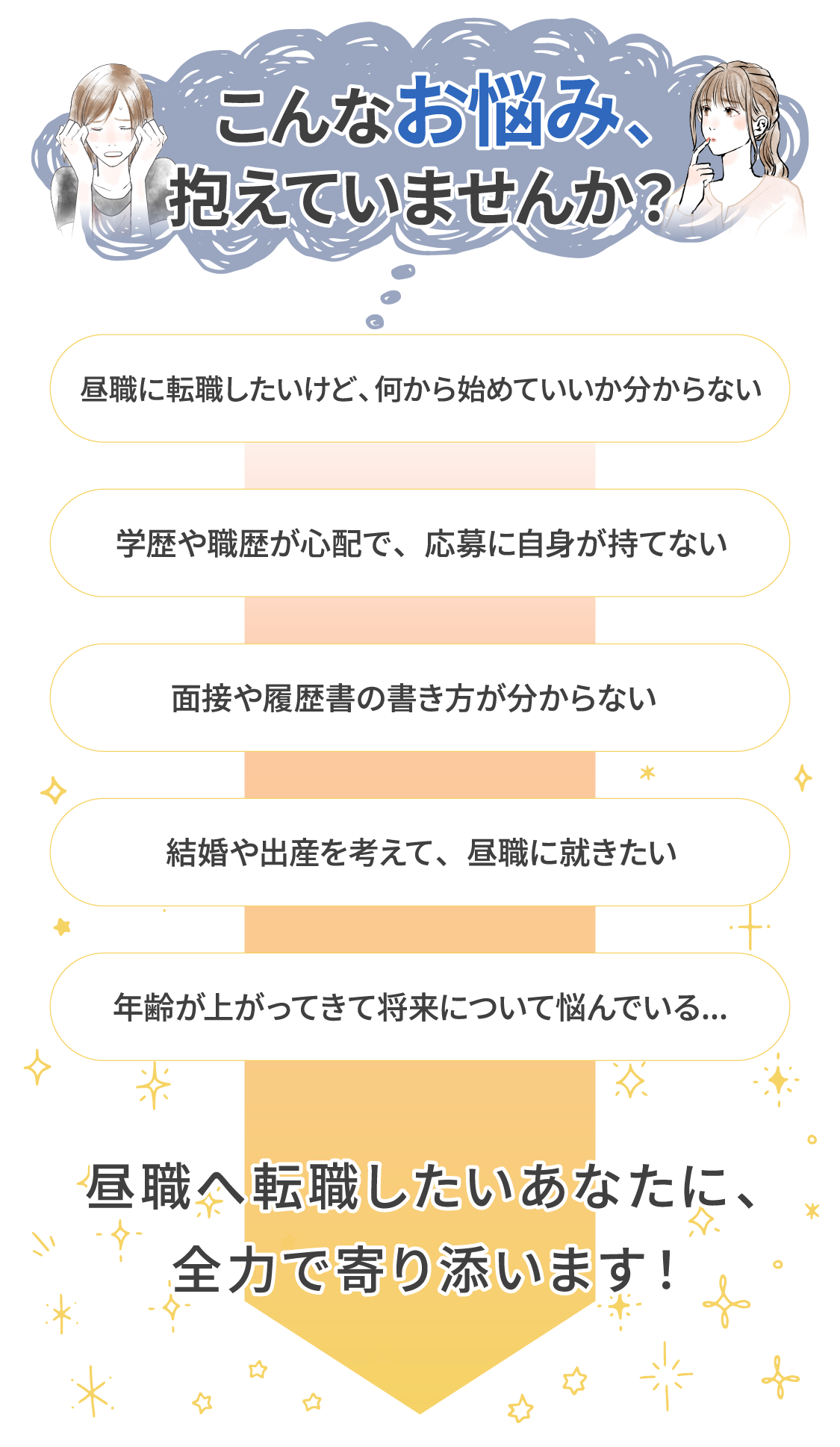 問題ありません!夜職で培った「コミュニケーション能力」「気配り」「対応力」などは、多くの企業で求められるスキルです。