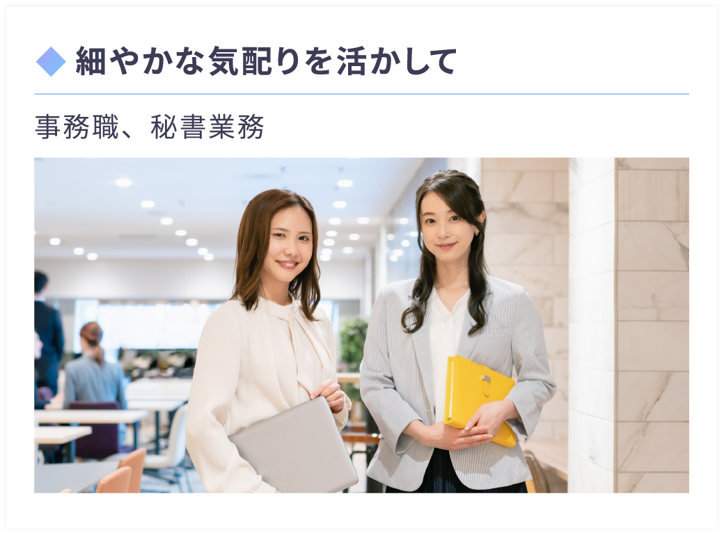 学歴不問の求人を多数ご用意しています。また、学歴がカバーできるスキルや経験をしっかりとヒアリングし、それを最大限活かせる職場をお探しします。